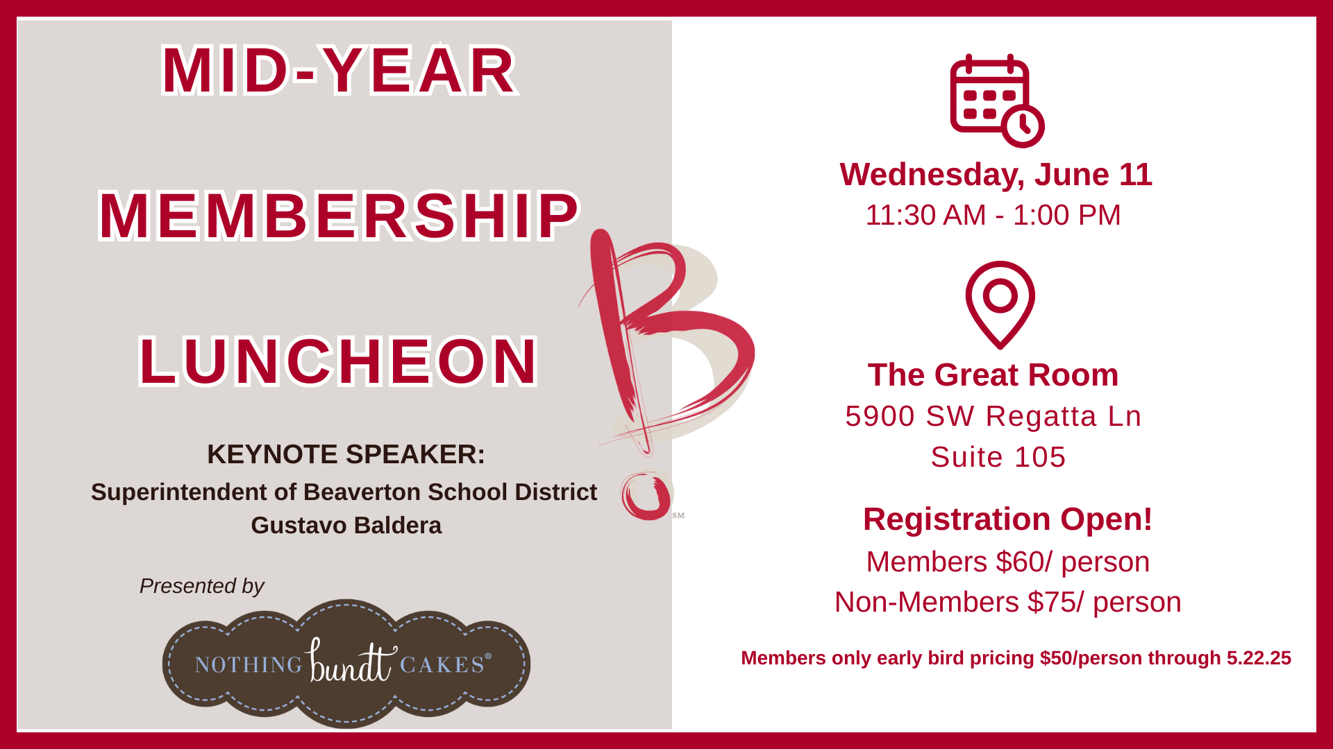 There will be time for networking and connecting as well as a Keynote address by Beaverton School District Superintendent Gustavo Baldera