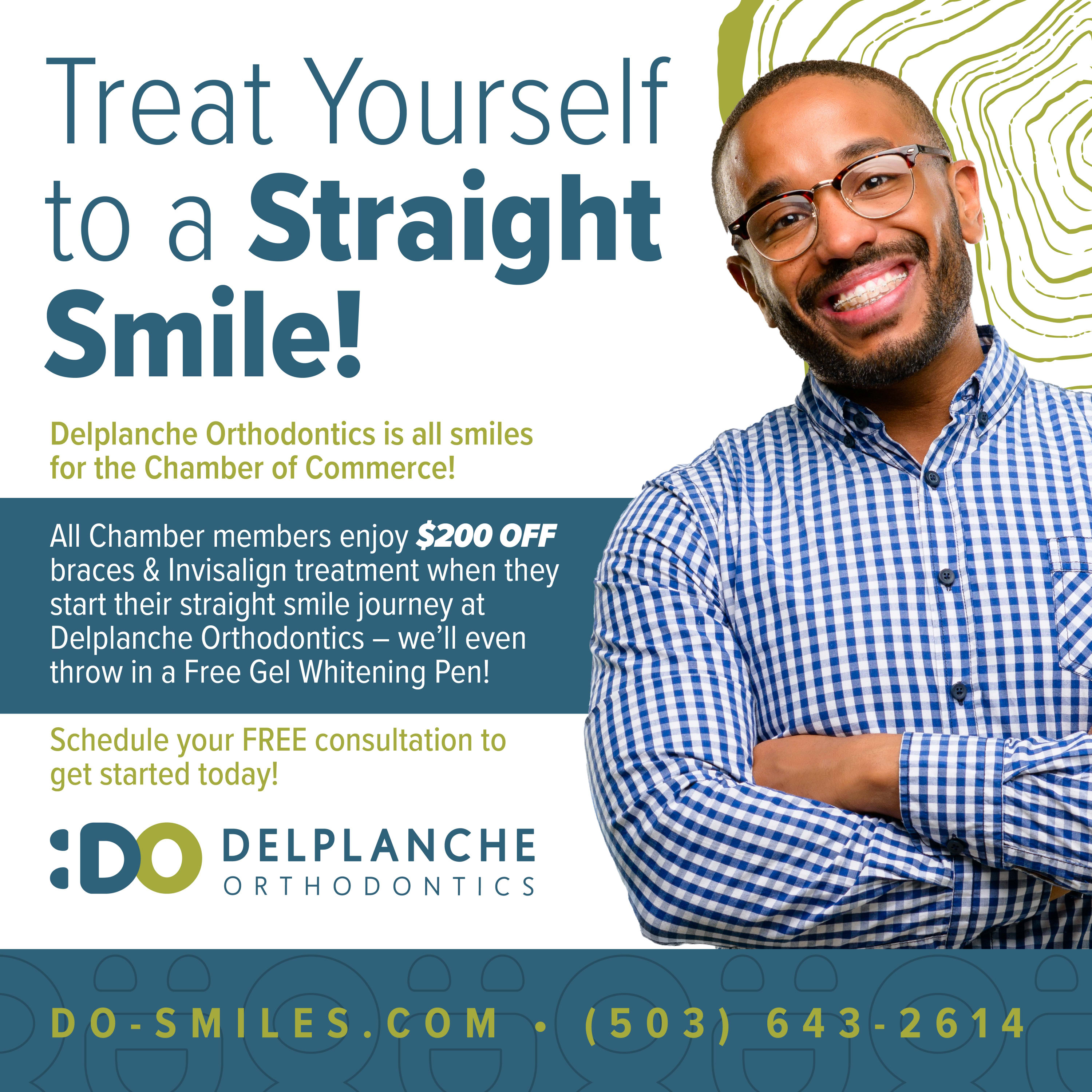 All Chamber members enjoy $200 off braces or Invisalign treatment plus a free gel whitening pen when they start their straight smile journey at Delplanche Orthodontics!